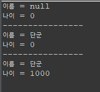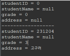 //멤버 변수의 자료형이 가지고 있는 기본값으로 멤버 변수에 데이터값을 초기화시킴