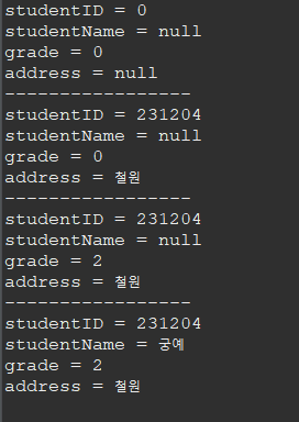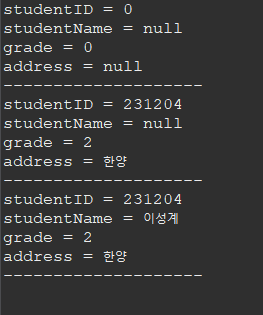 System.out.println("s.getStudentName() = " + s.getStudentName());//null 출력