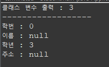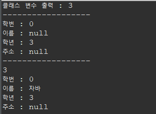 System.out.println(s3.studentName +" 학번 : "+ s3.serialNum);