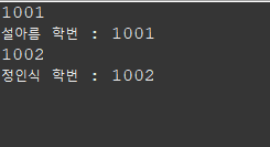 System.out.println(s2.studentName +" 학번 : " + s2.serialNum);