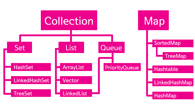 컬렉션 프레임워크의 전체 구조는 Collection 인터페이스와 Map 인터페이스 기반으로 이루어져 있다.